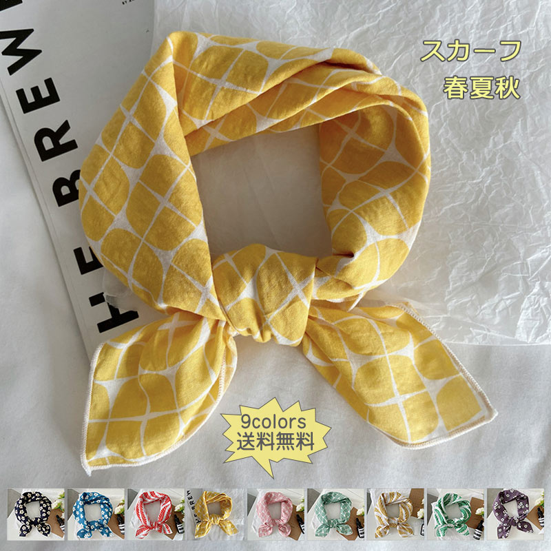 スカーフ 春夏秋 ネックスカーフ 綿 コットン チェック柄 正方形 花柄 首巻き レディース バンダナ 巻き物 贈り物 クリスマスプレゼント きれいめ 多機能