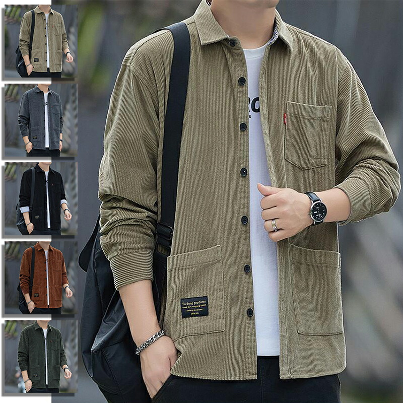 60%OFF シャツメンズ 長袖 秋 コーデュロイ 無地 レトロ おしゃれ ジャケット 重ね着 冬服 ファッション かっこいい トップス