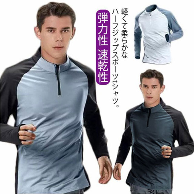 吸湿速乾シャツ メンズ 長袖 スポーツウェア トップス シャツ 通気性 速乾性 ストレッチ ハーフジップ スタンドネック 無地 ランニング フィットネス