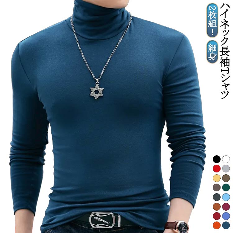 長袖 tシャツ インナーシャツ ロンT タイト ハイネック 2枚セット 長袖tシャツ カットソー 薄手 タートルネックtシャツ 秋 細身 スリム ストレッチ 春 ハイ メンズ