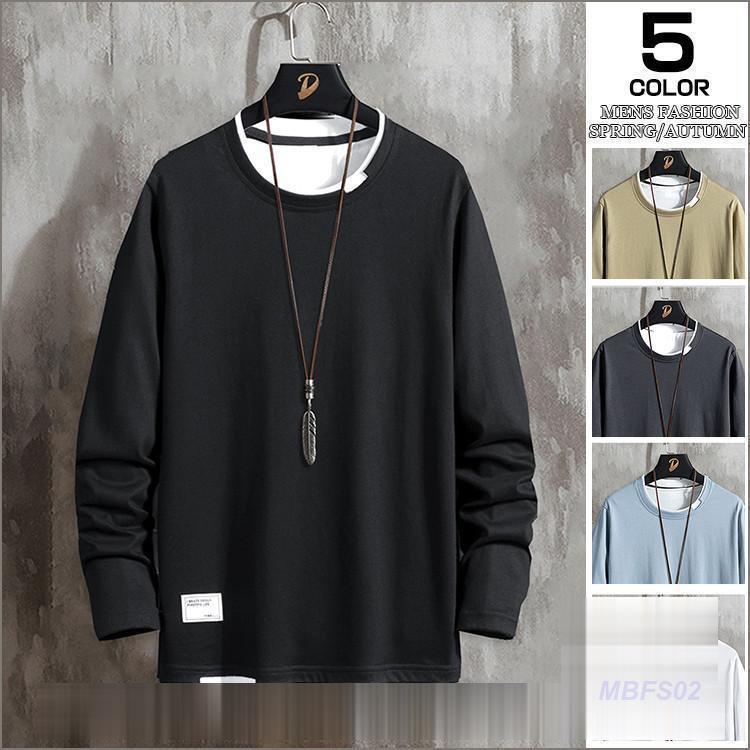 春 Tシャツ トップス 長袖 tシャツ 秋 丸首 無地 クルーネック ロンT メンズ シンプル ゆったり インナーtシャツ 秋服 ロングtシャツ 重ね着 カットソー 大きいサイズ