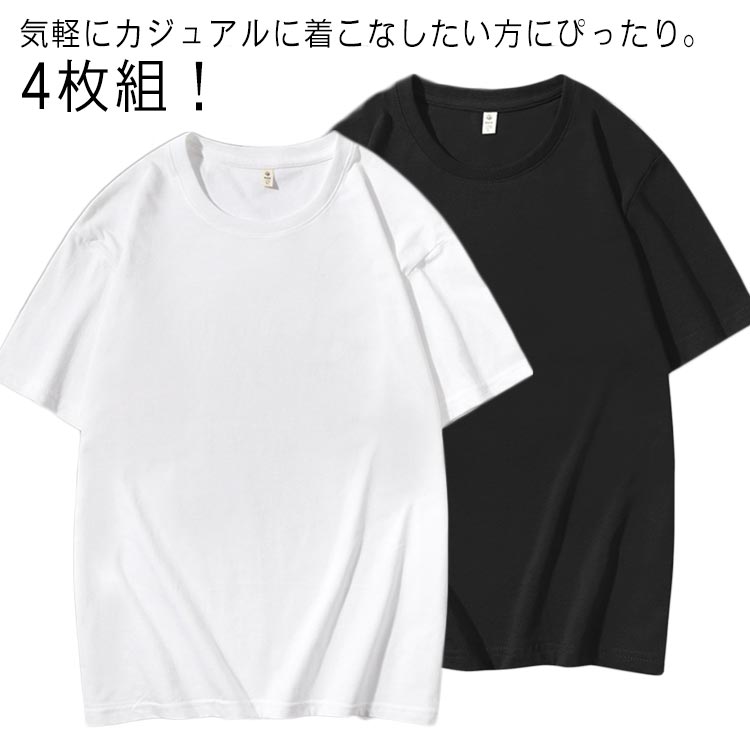 半袖 tシャツ 黒 無地 メンズ 大きいサイズ 白 Tシャツ まとめ買い 厚手 綿 4枚組 レディース 男女兼用 ホワイト ブラック クルーネ コットン