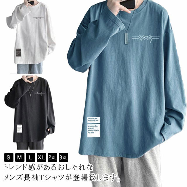長袖シャツ メンズ ロン ロングシャツ クルーネック 薄手 春服 秋 カットソー
