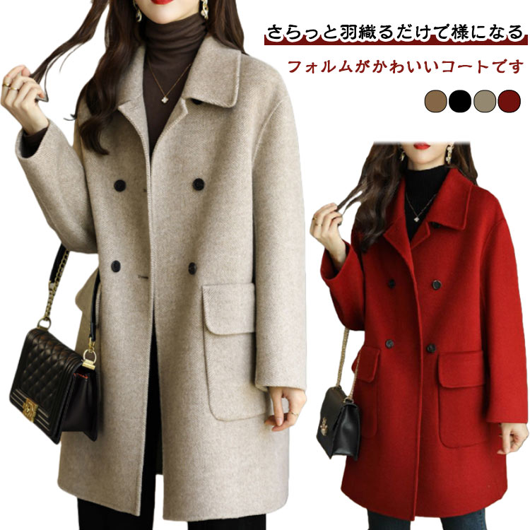 秋 エレガント コート 冬 ジャケット ミドル丈コート 長袖 ウールコート アウター ゆったり トレンチ ドロップショルダー オーバーコート 落ち感 きれいめ 体型カ 大きいサイズ
