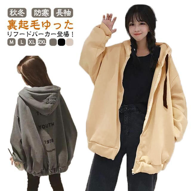 レディース 英字プリント 裏起毛 おしゃれ パーカー ゆったり 秋冬 オーバーサイズ ジップパーカー 防寒 プルオーバー 大きめ あたたかい 長袖 ロング 冬