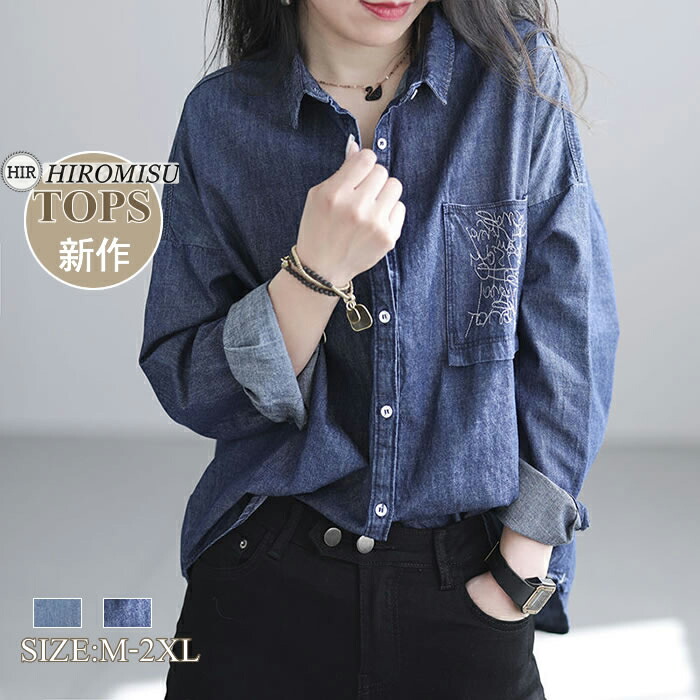 デニムシャツ レディース トップス 長袖 ブラウス カジュアル シャツ おしゃれ 春秋 アウター きれいめ 通勤 羽織り 重ね着 無地 前開き シンプル