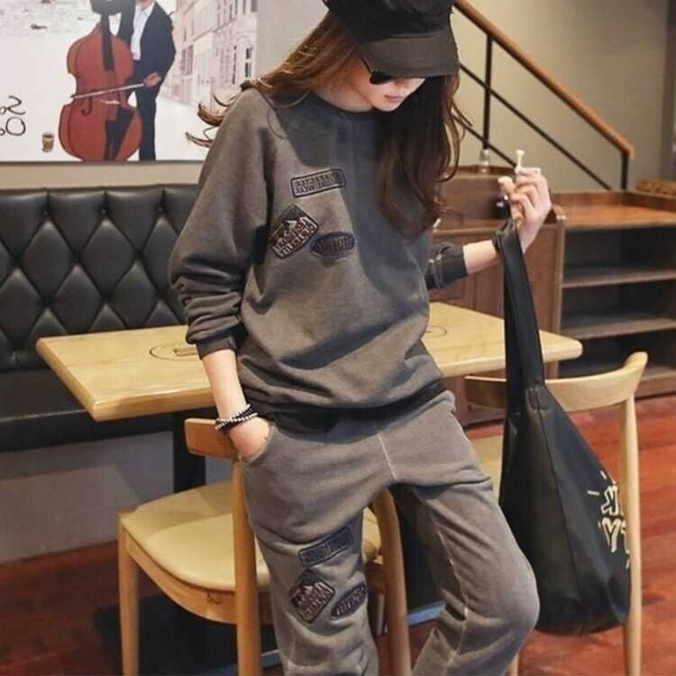 セットアップ レディース 春 レジャー ジャージ トレーナー 上下セット ラウンドネック 長袖 ロング丈 ゆったり カジュアル スウェット 体型カバー 秋 裏起毛 グレー スポーツウェア 40代 黒