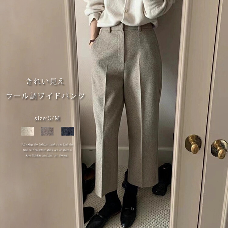 ウールパンツ レディース パンツ 秋冬 ワイド 九分丈 ワイドパンツ ストレート きれいめ ボトムス ウール調 センタープレス 暖かい フォーマル ポケット ストレートパンツ カジュアル