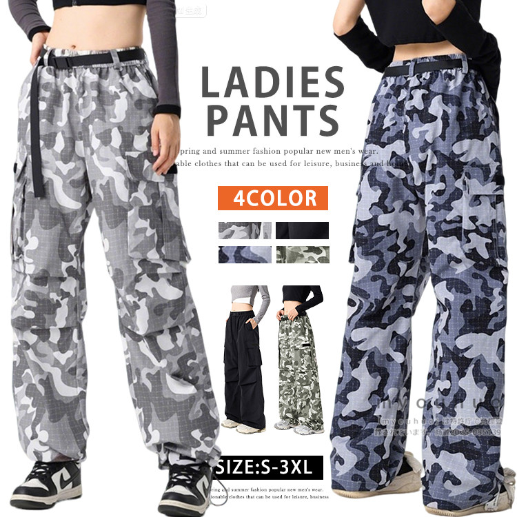 迷彩パンツ カーゴパンツ ワイドパンツ レディース ダンス ボトムス 迷彩柄 カジュアル
