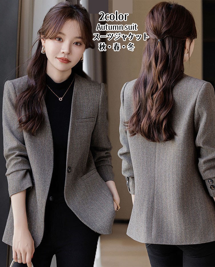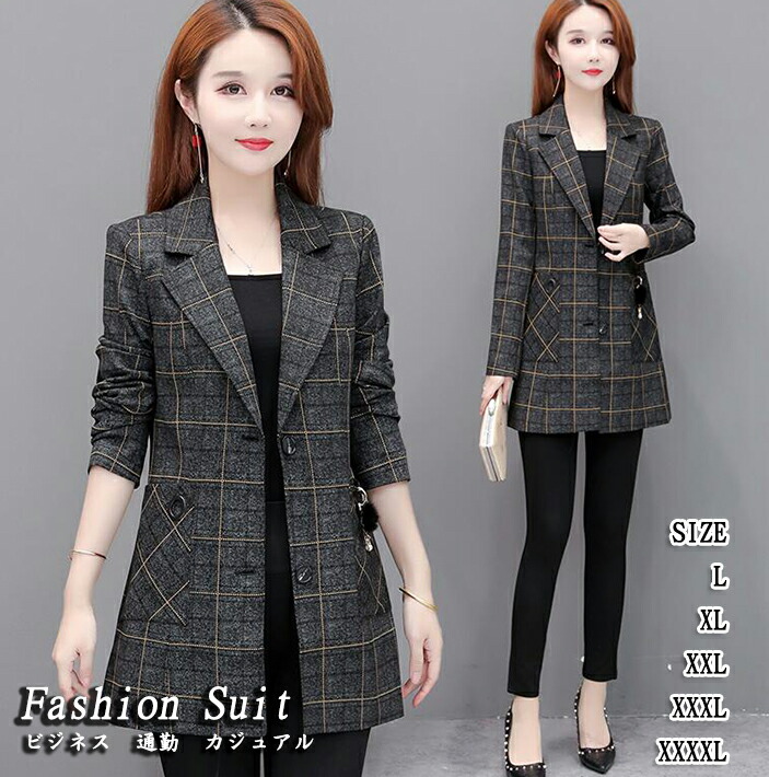 レディース チェック テーラードスーツ レディーススーツ レディースジャケット 二つボタン おしゃれ 新着 秋 冬 ダークグレー OL 事務所 フォマール 大きサイズ 30代 40代 50代 20代