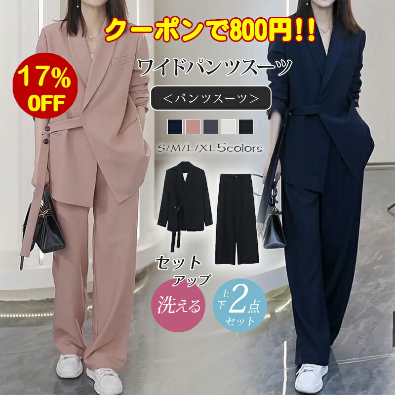 800円 お得な割引クーポン ワイドパンツスーツ パンツスーツ レディース セットアップ ジャケット 上下 2点セット 洗える パーティー セレモニー 面接 卒業式 就活 秋 スーツ フォーマル 春
