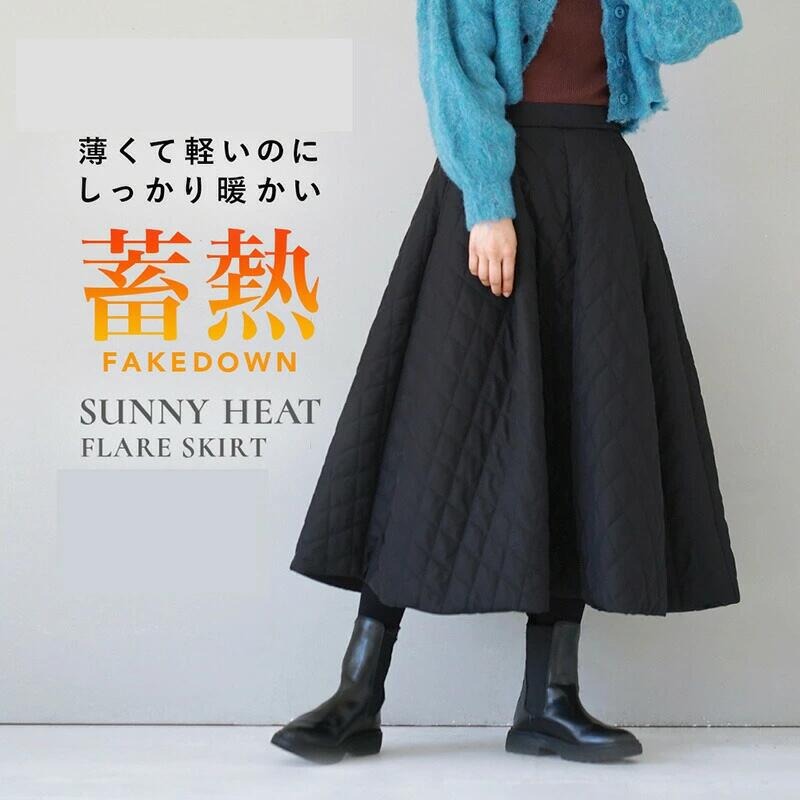 スカート レディース 中綿 ロング丈 ミモレ丈 膝下 キルティング 冬 サニーヒート キルティングスカート ウエストゴム