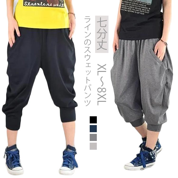~8 スウェットパンツ 体型カバー ゆったり 七分丈 ウエストゴム