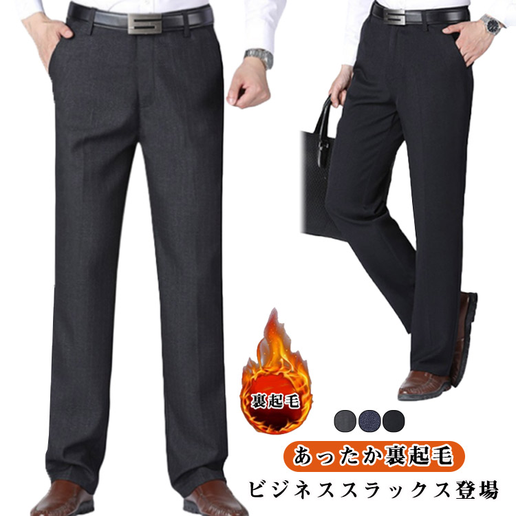 ビジネススラックス メンズ 裏起毛 暖かい パンツ ビジネスパンツ あったかパンツ