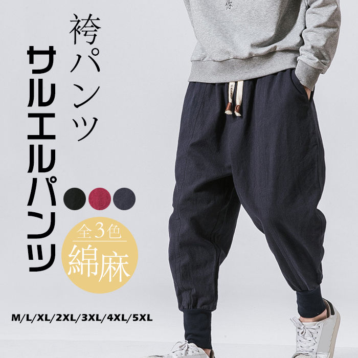 サルエルパンツ メンズ ハレムパンツ ロングパンツ 綿麻パンツ 袴パンツ サルエル パンツ サルエルパンツ リラックス