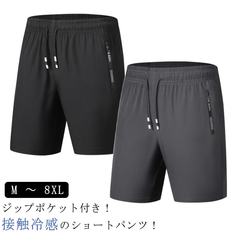 五分丈 メンズ ハーフパンツ 無地 涼しい ジップポケット付き ショートパンツ 冷感 ひざ丈 接触冷感 イージーパンツ 短パン 涼感 薄手 吸汗速乾 軽量 軽い アイス 通気