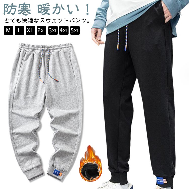 送料無料 メンズ 裏起毛 スウェットパンツ ジョガーパンツ ストレッチ 防風 あったか テレワーク ルームウェア 部屋着 暖 パンツ 無地