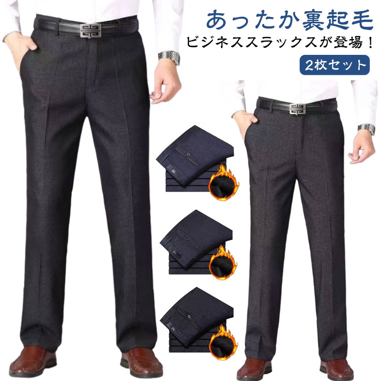 メンズ 暖パン 2枚セット 裏起毛 ビジネスパンツ 冬 防寒 秋 あったか 紳士 防風 裏ボア 厚手 通勤 フォーマル 仕事着 長ズボン ビジネス 無地 スラックス スーツパ 暖かい