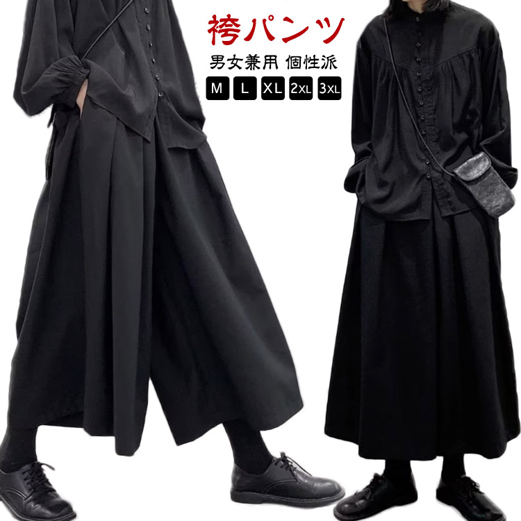 袴パンツ メンズ ワイドパンツ ゆったり ハカマパンツ スカーチョ ビッグシルエット スカート風 フレアパンツ 大きいサイズ 黒 モード系 ガウチョパンツ おしゃれ 九分丈 春 夏 秋 カジュアル