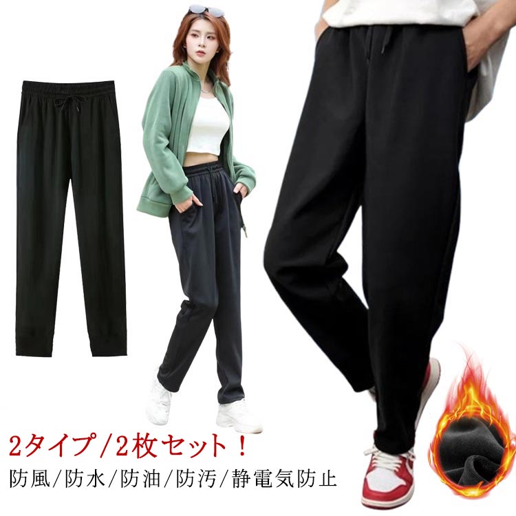 メンズ 防風 2タイプ 2枚セット 長ズボン 防寒 男女兼用 ジョガーパンツ 裏フリース 裏起毛 ストレートパンツ 撥水 レディース トレーニング スポーツパンツ スポーツウェア ランニ ロングパンツ