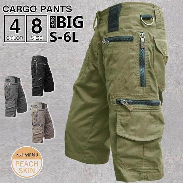 カーゴパンツ メンズ 大きいサイズ ストレッチ 七分丈 ポケット 綿 ボトムス クロップドパンツ チノパンツ ワイドパンツ ショーツ おしゃれ 半ズボン ハーフパンツ 夏物 春夏秋 メン