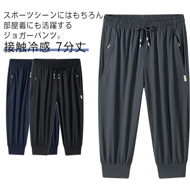 7分丈 メンズ 速乾 クロップドパンツ 接触冷感 アイスシルク トレーニング ジョガーパンツ ジム ポケット付き スポーツ ダンス 部屋着 ウエストゴム ストレッチ 夏物 スウェットパン 大きいサイズ
