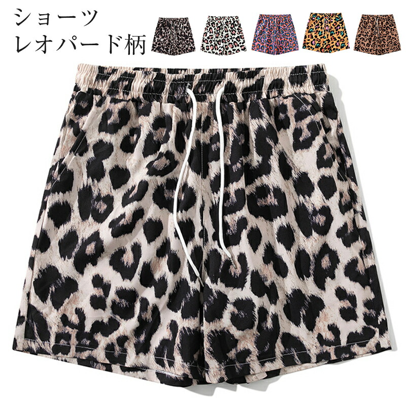 ショートパンツ メンズ おしゃれ ショーツ 短パン ハーフパンツ パンツ 膝上 ひざ上 レオパード 豹柄 ゴルフ アウトドア バスケ バスパン ランニング イージーパンツ カジュアル ス メンズパンツ