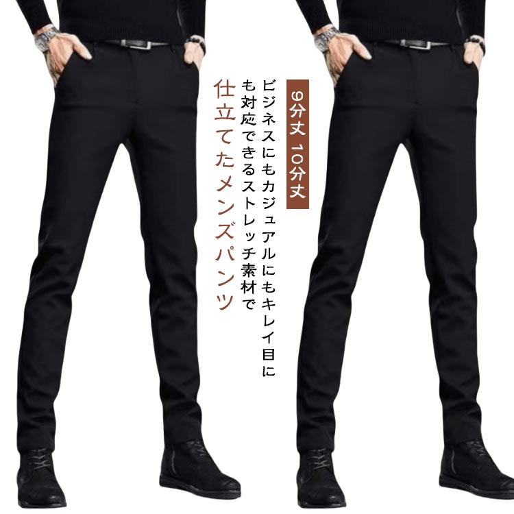 9分丈 スリムパンツ 伸縮 メンズ 春 スキニーパンツ 10分丈 長ズボン 夏用 スラックスパンツ ストレッチ 黒 秋 パンツ カシュガル 快適 ビジネス ゴルフパンツ 大きサイズ 細身