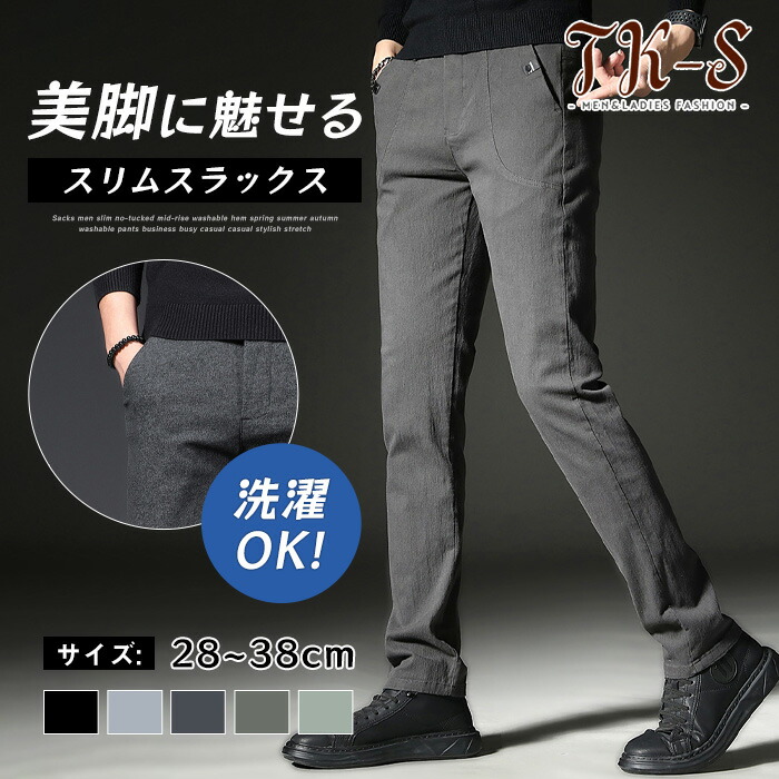 スラックス メンズ スーツパンツ ビジネスパンツ スリム 細身 美脚 ボトムス おしゃれ ストライプ クールビズ 紳士 洗える 春夏秋 通勤 仕事着 キレイめ 20代 30代 40 シンプル