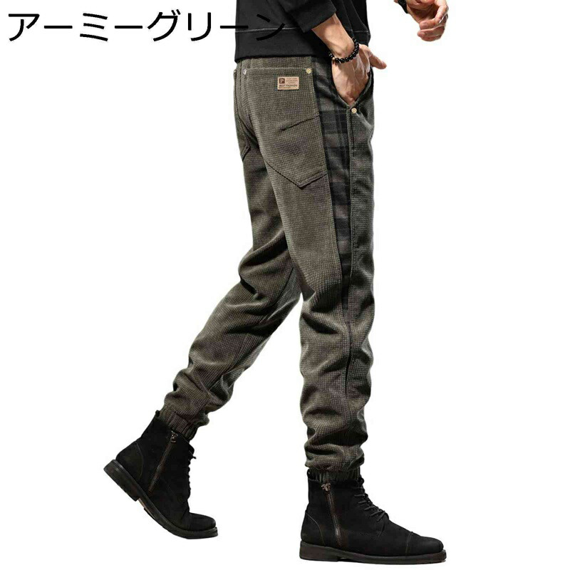 ジョガーパンツ コーデュロイ メンズ 秋冬 パッチワーク 切り替え 細身 テーパードパンツ スリム フィット ストレッチ スキニーパンツ 紳士 トレーナーパンツ ヴィンテージ カジュアル 長ズボン