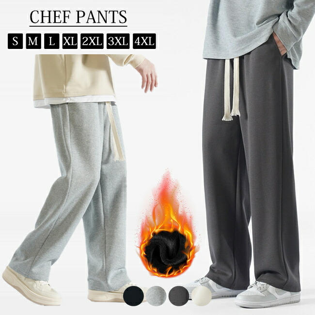 ワイドパンツ シェフパンツ ボトムス メンズ 裏起毛 裏ボア 暖かい イージーパンツ ワーク パンツ 厚手 防寒 秋 冬 オールシーズン テーパードパンツ ルーズ ワイドシルエット ロング丈 ゆったり