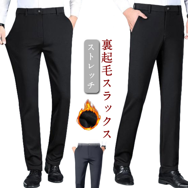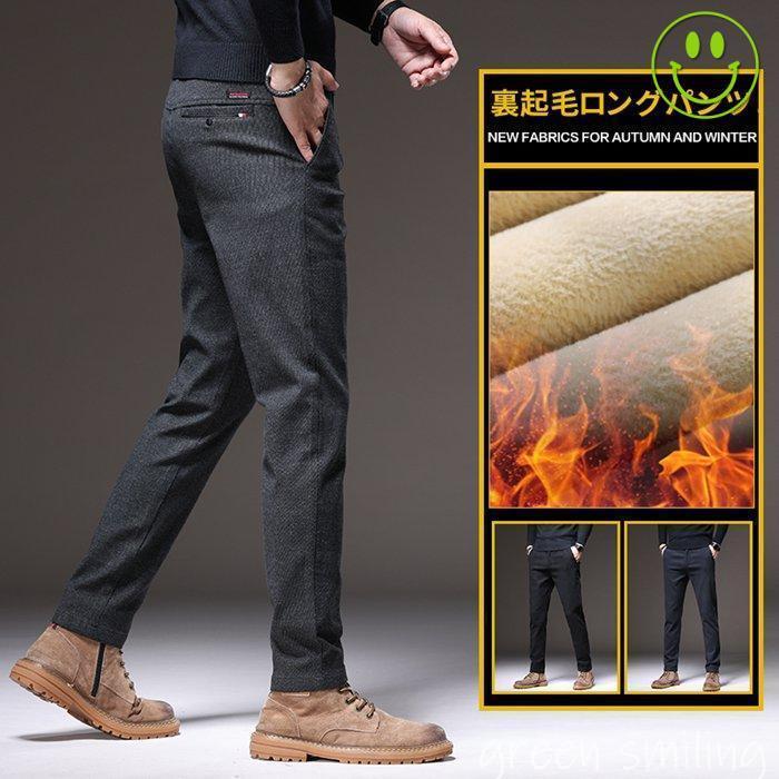 スラックス メンズ 秋冬 ストレッチ素材 スリム 裏起毛 ロングパンツ ウォッシャブル 大きいサイズ
