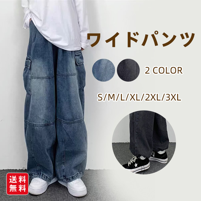 デニムパンツ ワイド カーゴパンツ メンズ ゆったり ポケット 大きめ ロングパンツ 長ズボン 春夏 秋冬 ビッグサイズ メンズデニム ストリート