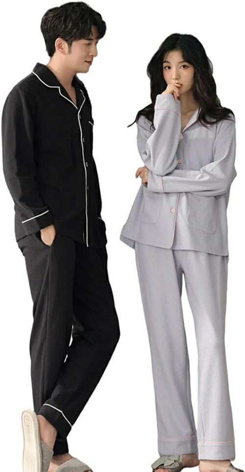 ジュタオピン ペアパジャマ 長袖 パジャマ メンズ おしゃれ ペア 春夏 ペアルック カップル 秋 レディース ルームウェア おそろいパジャマ 前開き ワッ 冬