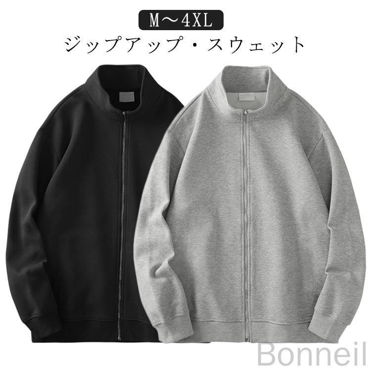 スタンドカラー スウェット ジップアップ 薄手 パーカー ゆったり フルジップ スポーツ 長袖 無地 大きいサイズ