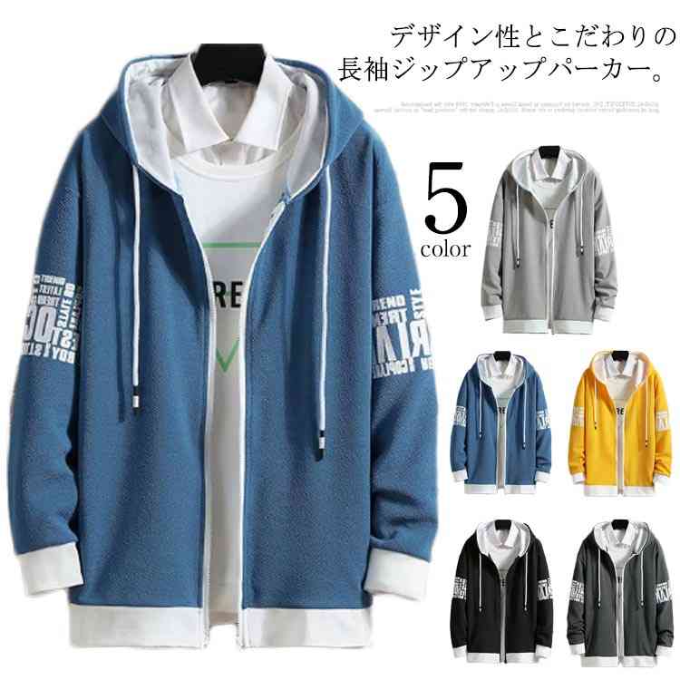 切り替え 袖文字 秋服 フード付き メンズ スポーツ パーカー ジップアップパーカー 春 軽い トップス 長袖パーカー 前開き 秋 薄手 カーディガン 羽織り ゆったり 大きいサイズ カップ アウター