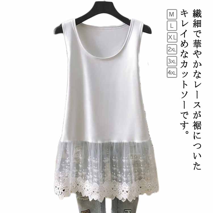 キャミソール レディース 裾 レース型 ロング 肌着 インナー 女性 ノースリーブ クルーネック レース タンクトップ シンプル 重ね着 インナータンク 大きいサイズ おしゃれ レイヤード