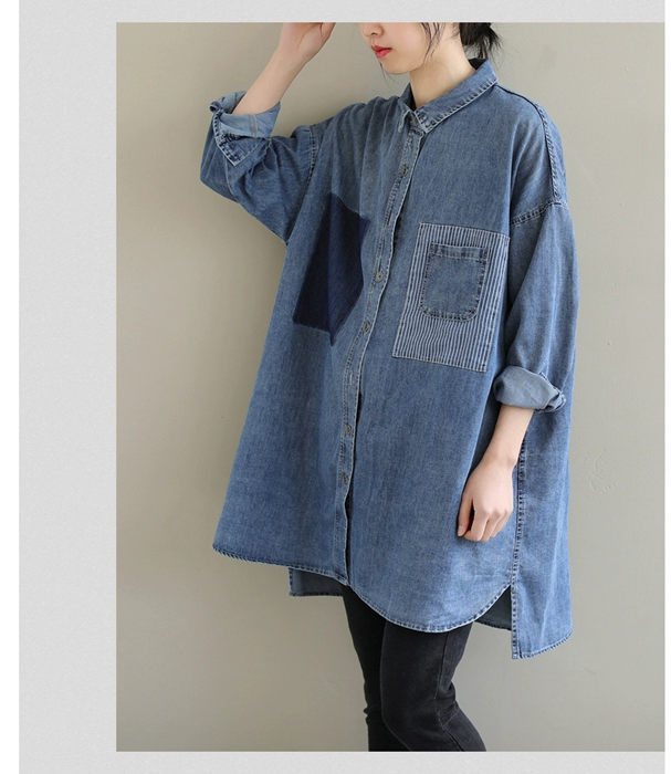 デニムシャツ チュニック レディース 秋 ロングシャツ トップス ブラウス 長袖 コーデ 無地 ビックシャツ 切替え ロング ミドル丈 テールライン ジャケット アウター 可愛い 着痩せ オフィ 大人
