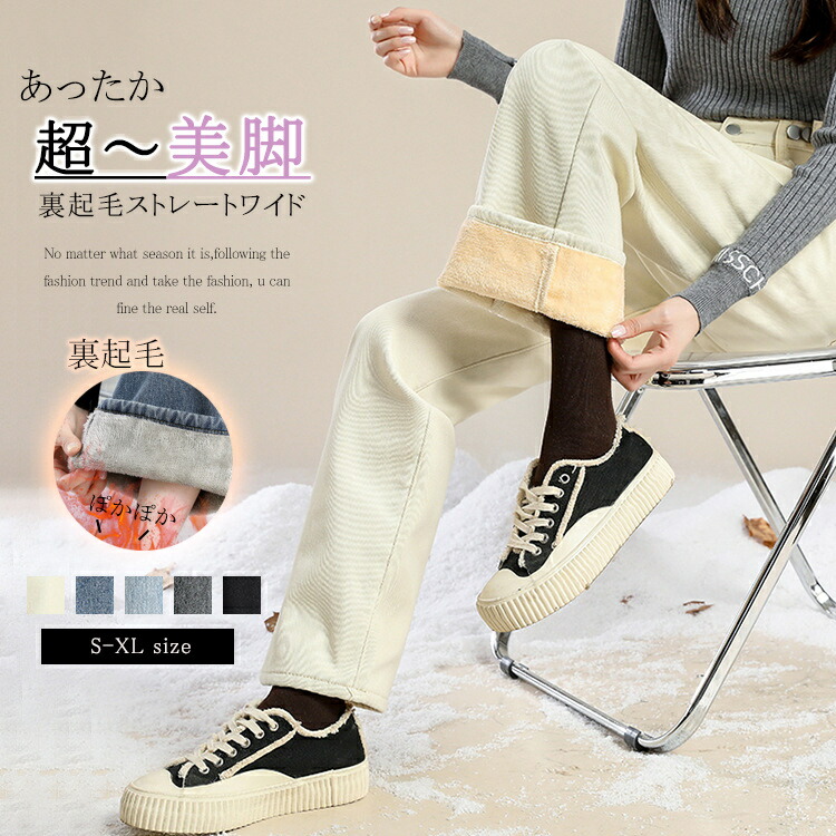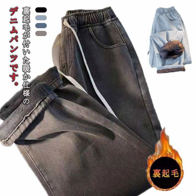 デニムパンツ 裏起毛 レディース 暖かい ジーパン ワイドパンツ ゆったり 冬用 防寒 美脚 ズボン ロングパンツ 大きいサイズ 普通丈 高身長 低身長 厚手 温かい カジュアル おしゃれ あったか