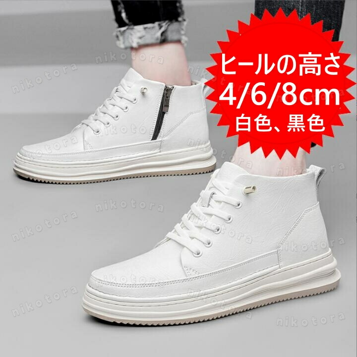 ハイカットスニーカー シークレットシューズ メンズ 運動靴 レースアップ 4cm 6cm 8cm 背が高くなる 身長アップ インヒールスニーカー カジュアル靴 ウォーキング スポーツ サイドファスナー