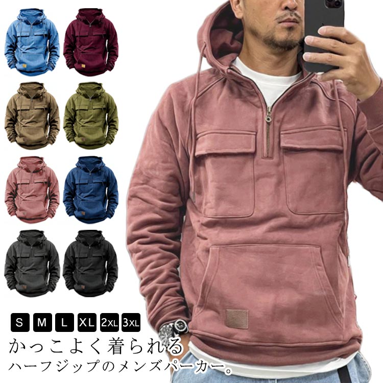 パーカー メンズ ハーフジップ プルオーバーパーカー フード付き トップス スウエット 30代 パーカ 秋 春 冬 普段着 カジュアル スポーツ 大きサイズ