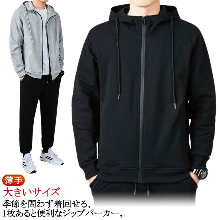 送料無料 パーカー メンズ 薄手 春秋 ジップパーカー フルジップ スウェットパーカー 綿 コットン ジップアップパーカー ゆったり おしゃれ スポーツ グレー ブラック