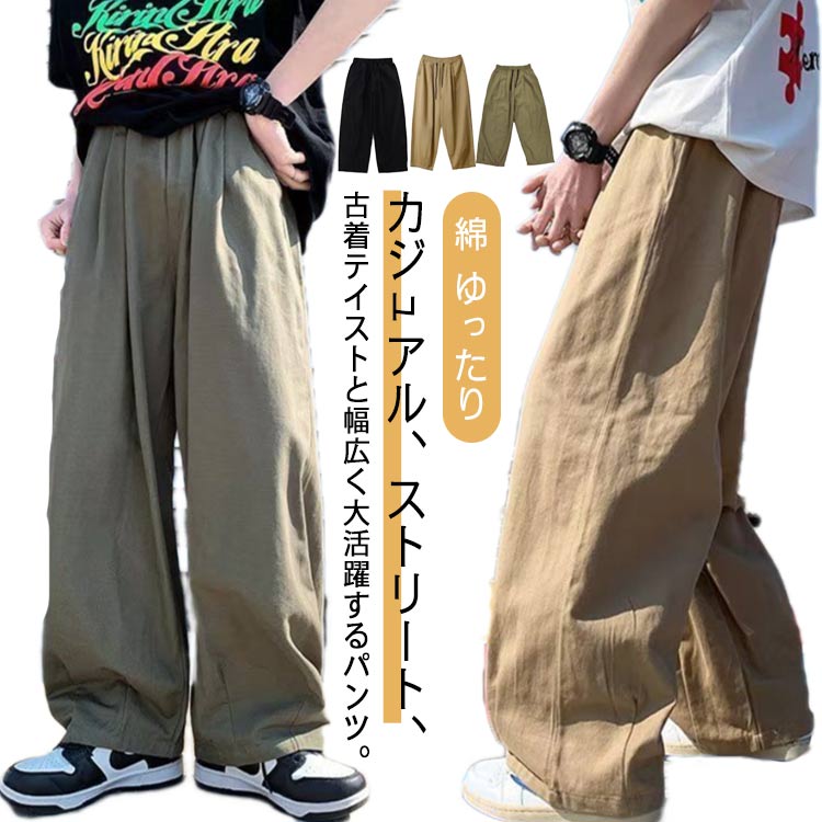 綿 カーゴパンツ ボトムス メンズ パンツ ワイドパンツ ウエストゴム カジュアルパンツ ストレート ズボン ゆったり おしゃれ 大きいサイズ チノパン ファッション