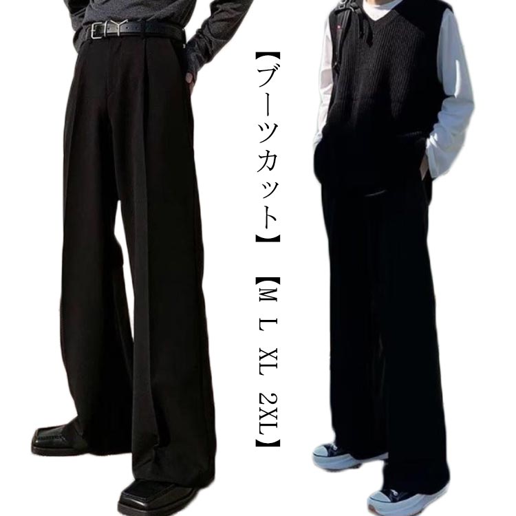 送料無料 セミフレア ズボン フレア パンツ ブラック メンズファッション ゆったり シューカット 通勤 通学