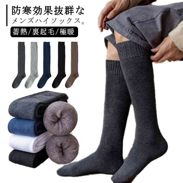厚手 膝上 あったか 締め付けない 男性用 冷え対策 無地 ニーハイソックス