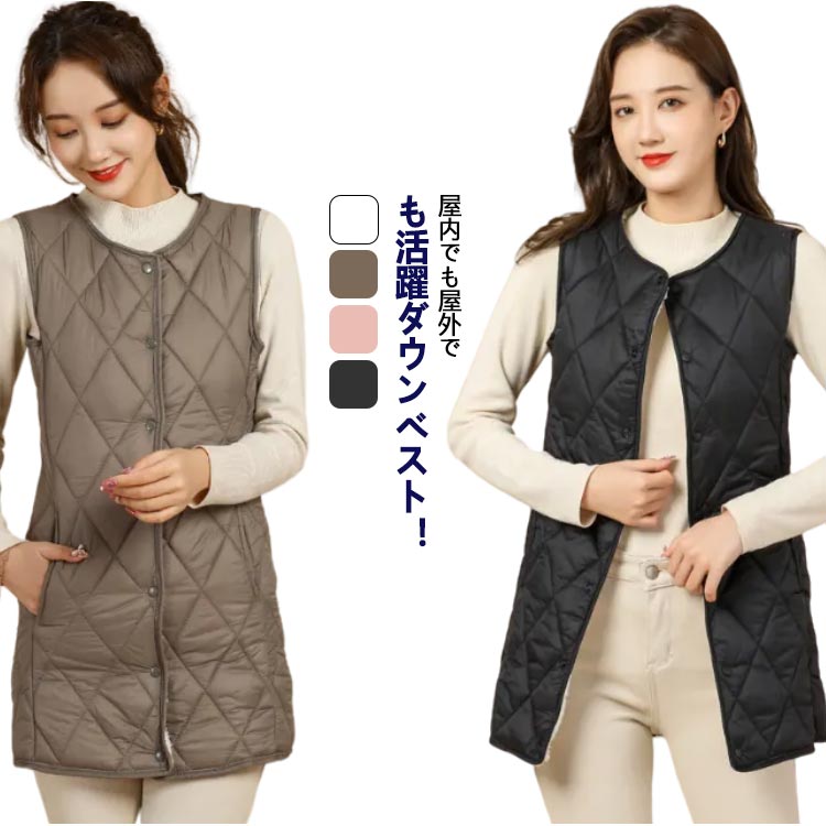 ダウンベスト 腰もお尻もカバーして暖かい 冷房対策 レディース ポケット 暖かい