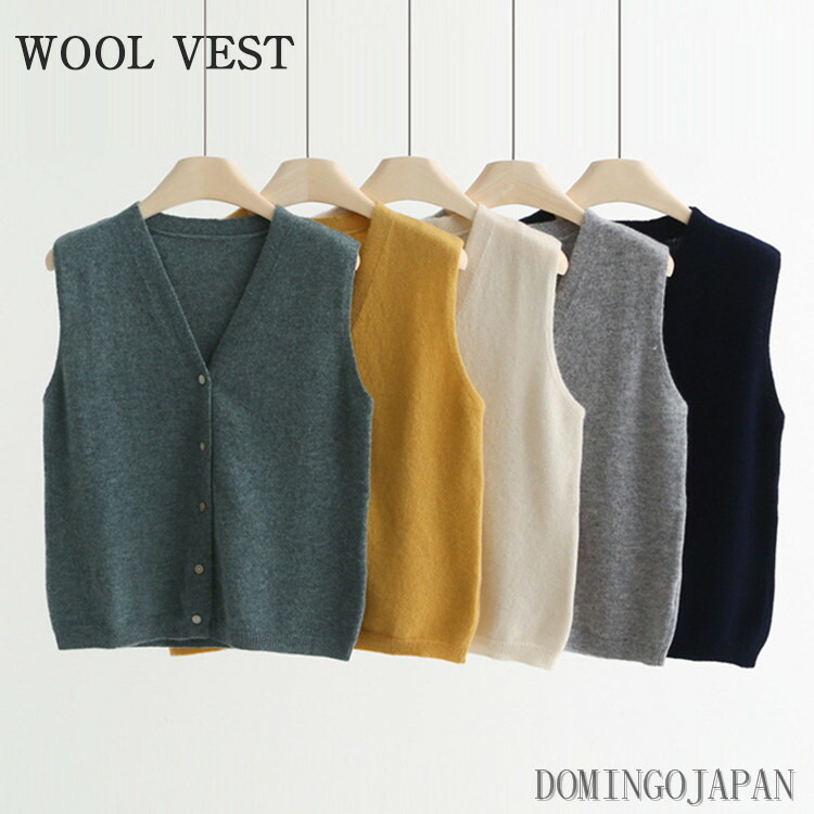 ニットベスト 春 春服 秋 レディース Vネック ウール100% カーディガン 前開き ニット ベスト ノースリーブ インナー 秋服 無地 シンプル 重ね着風 通勤 大人 オシャレ