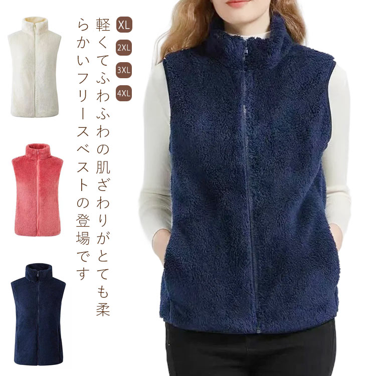 ボアベスト レディース フリース ベスト ジレ もこもこ 秋冬 前開き アウター フリースベスト ノースリーブ 袖なし 厚手 スタンドカラー 立ち襟 ルームウェア 防寒着 アウトドア 大きいサ 部屋着
