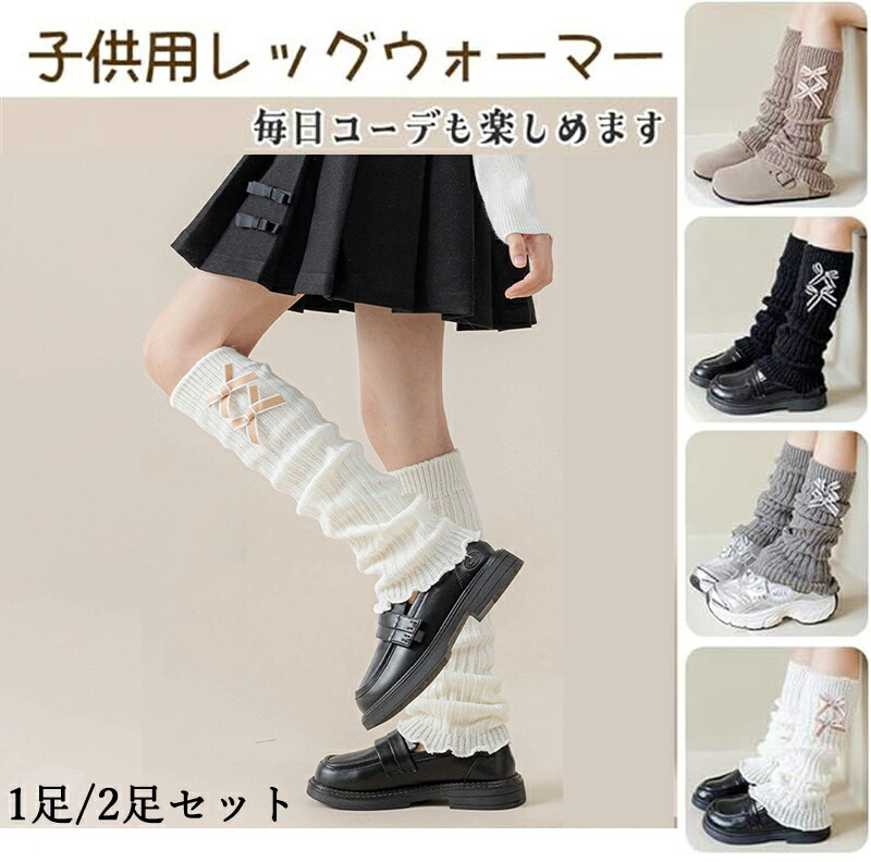 レッグウォーマー キッズ 1足 2足セット ダブルリボン ルーズソックス子供 女の子 冷え対策 派手 暖かい フリーサイズ ママ揃い ダンス衣装