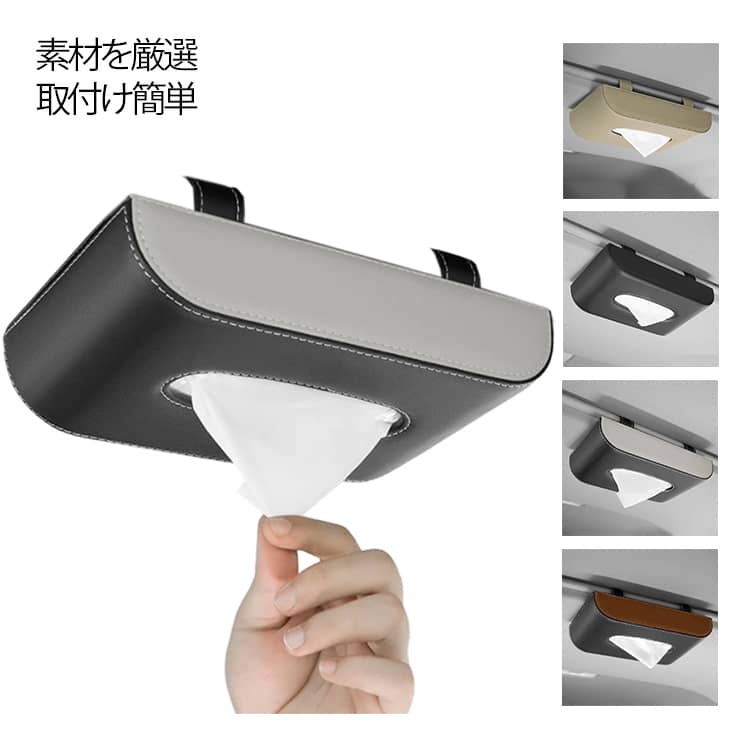 車 ティッシュホルダー ティッシュケース 天井 吊り下げ カー用品 車用 ティッシュボックス 車内 便利グッズ 車用品 クルマ用品 サンバイザー 合皮 革 レザー生地 高級感 おしゃれ かわ シンプル